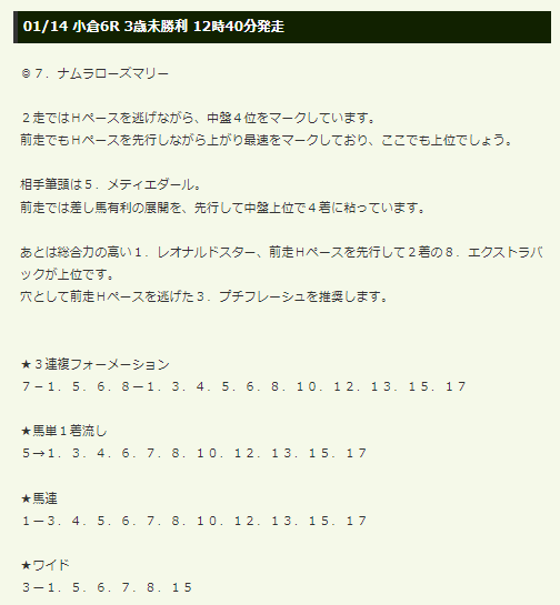 (3)01/14 小倉6R 3歳未勝利(芝1200)