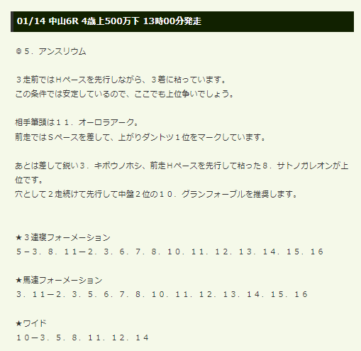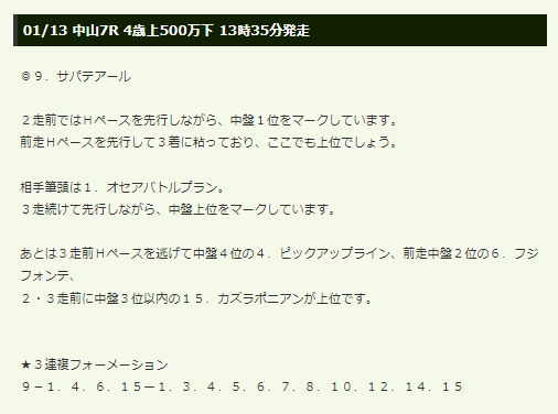 (4)01/14 中山6R 4歳以上1勝クラス(ダ1200)