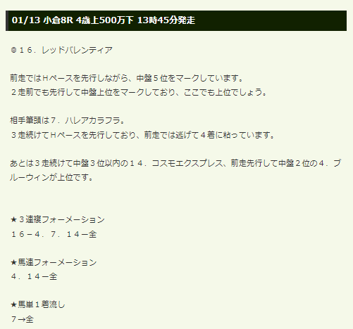 (2)01/13 小倉8R 4歳以上1勝クラス(芝1800)