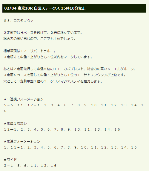 (7)02/04 東京10R 白嶺ステークス(ダ1600)