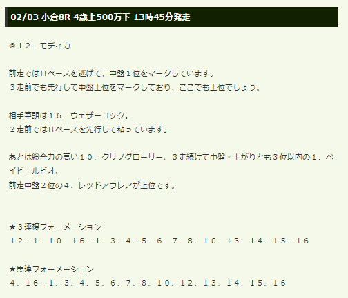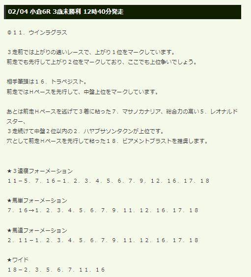 ・2/25小倉11R ワイド13,240円