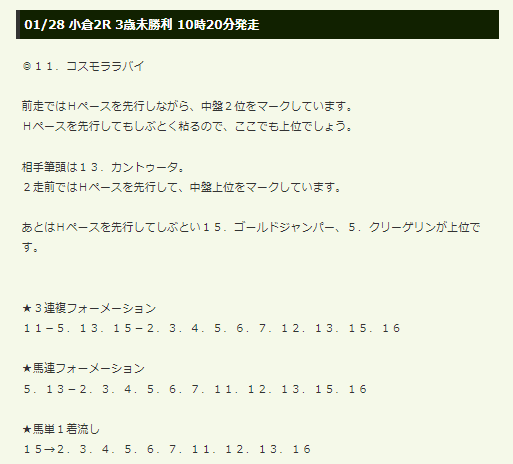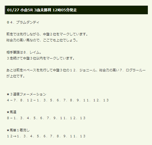 ・1/14小倉8R 馬連13,710円