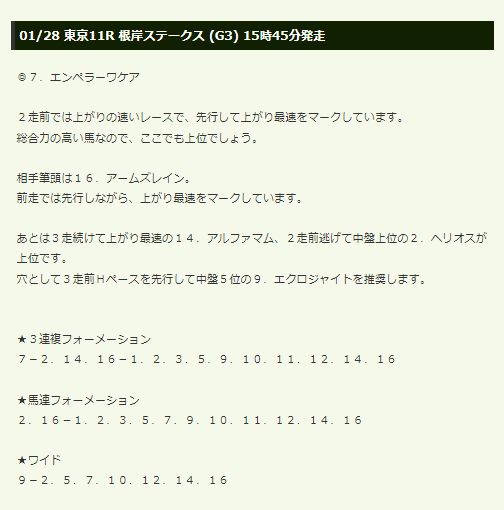 (3)01/28 東京11R 根岸ステークス (G3) (ダ1400)